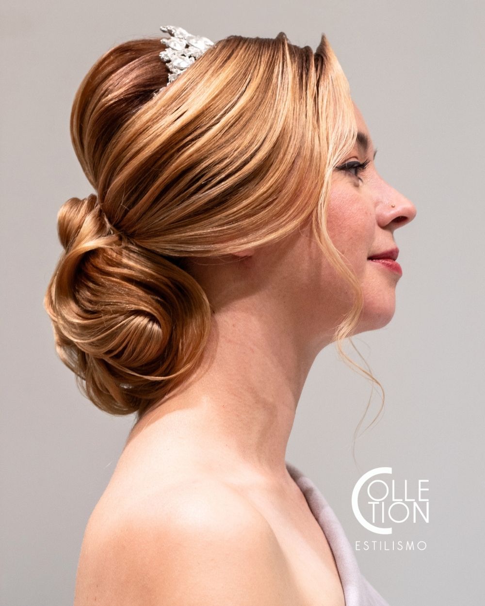 El segundo, un recogido lateral de inspiración romántica, evocaba la delicadeza de una novia moderna. Trenzas sutiles se entrelazaban como pensamientos íntimos, mientras las texturas aportaban profundidad y carácter. Cada detalle parecía diseñado para capturar miradas y emociones, logrando un equilibrio perfecto entre estructura y suavidad.