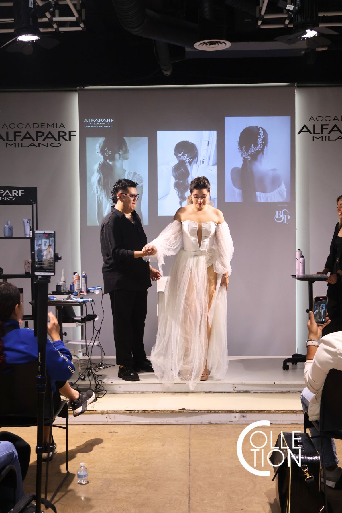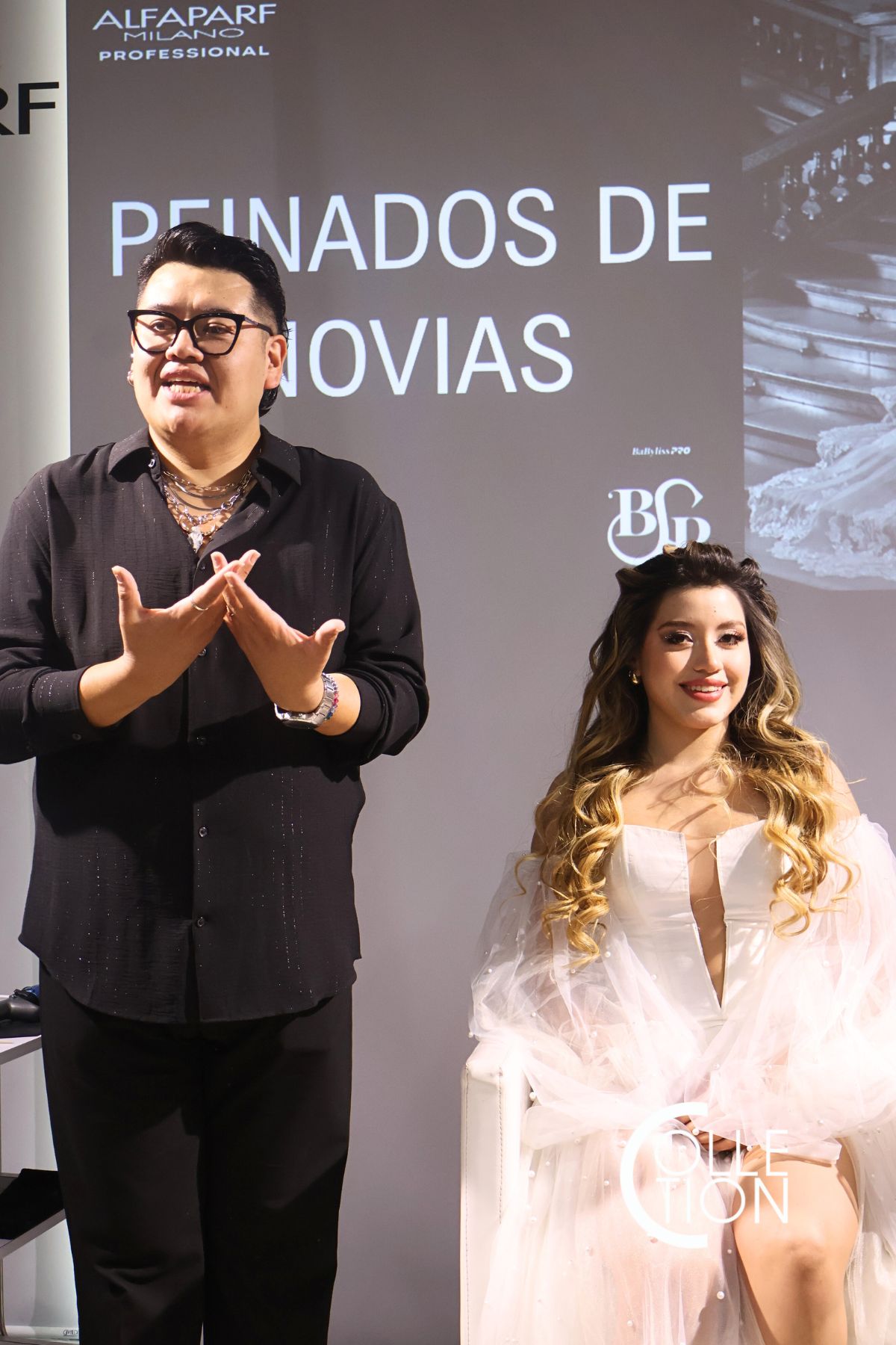 La inspiración se elevó aún más con el apoyo de la nueva línea Style & Care de Semi Di Lino by Alfaparf Milano, con la cual Oscar dio vida a coletas minimalistas y sofisticadas, así como a dos peinados de novia que robaron suspiros entre los asistentes.