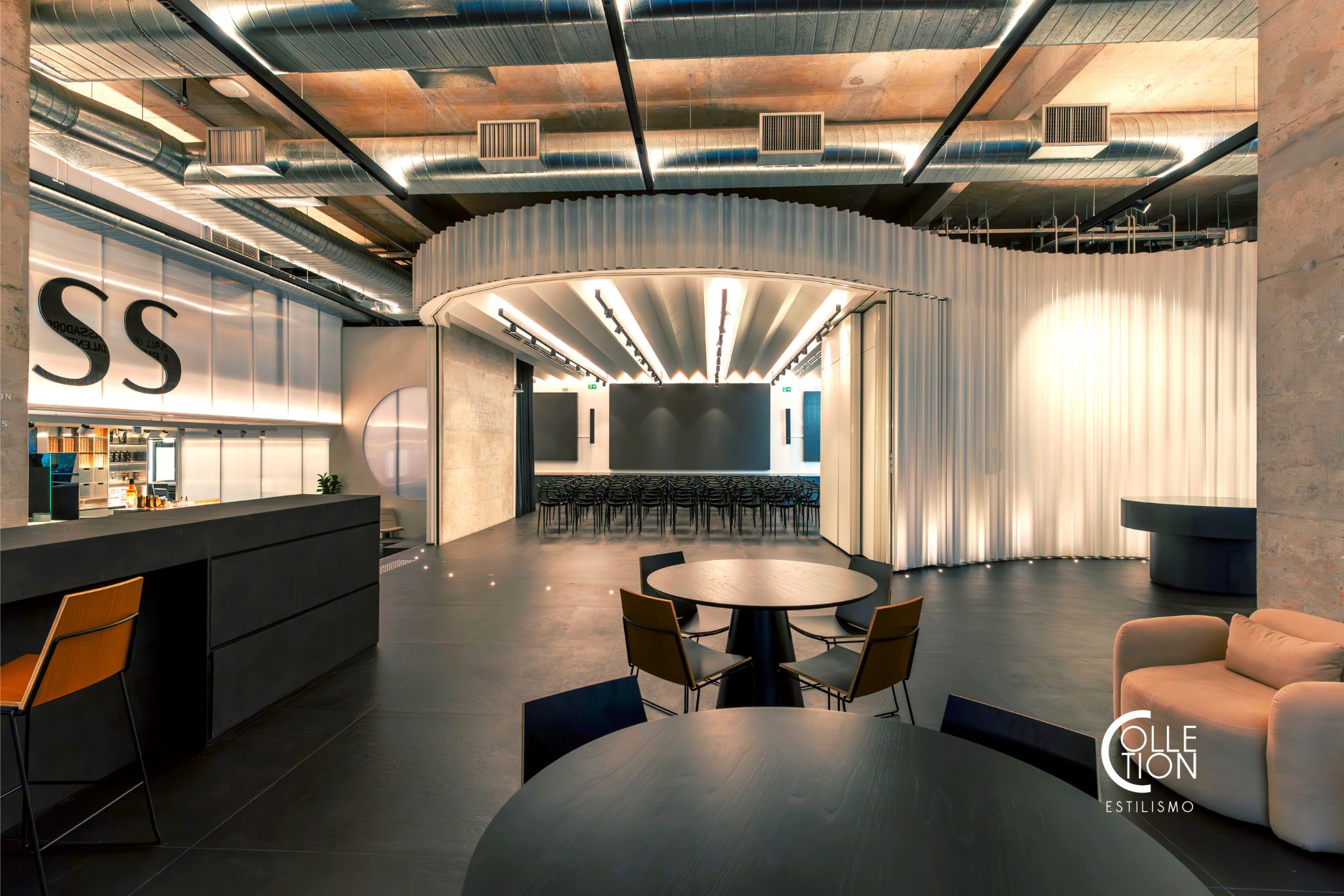 La imponente recepción, con su iluminación cálida y detalles industriales sofisticados, da la bienvenida a alumnos, artistas invitados y educadores con una energía que invita a la innovación. Las aulas y auditorios, perfectamente equipados, están pensados para facilitar tanto el aprendizaje técnico como el desarrollo creativo.