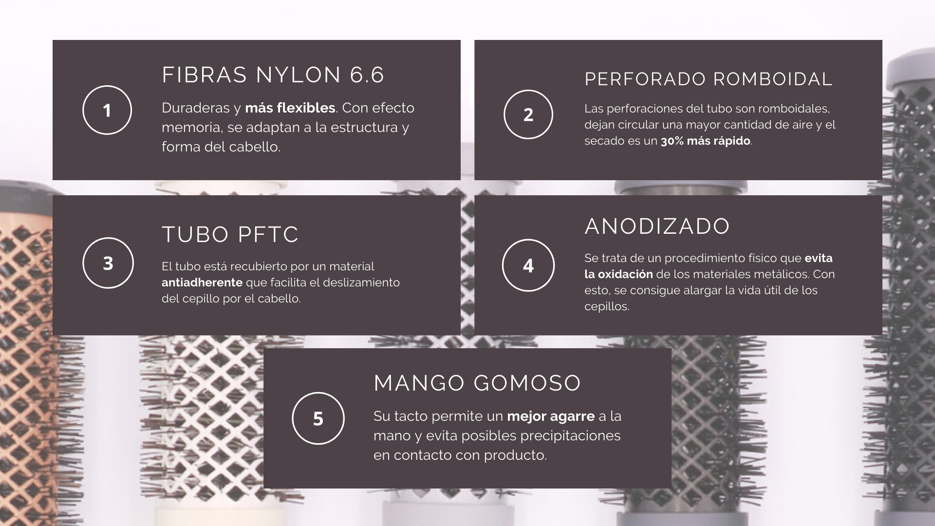 Los cepillos de Termix destacan por su calidad, materiales técnicos y capacidad de mejorar tus servicios profesionales. Entre sus beneficios principales están: