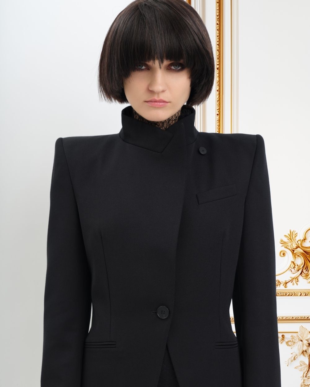 Gráficos atrevidos, cortes fluidos pero estructurados, donde la elegancia se expresa con fuerza.