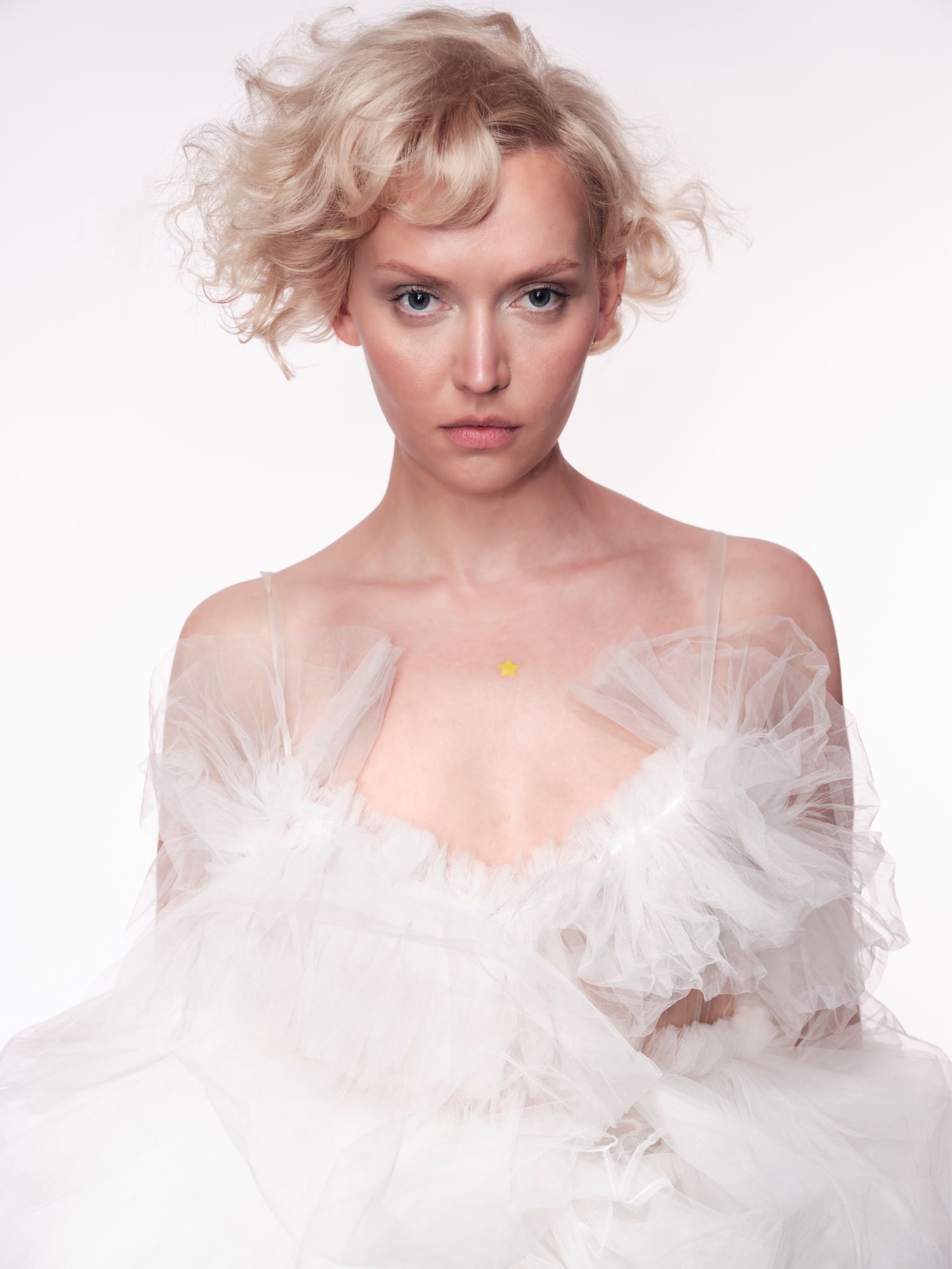 Our main theme is ethereal/dreamy, each model looking angelic and dressed in soft white with. floaty diffused hair and powdered faces. A feeling of being brand new.