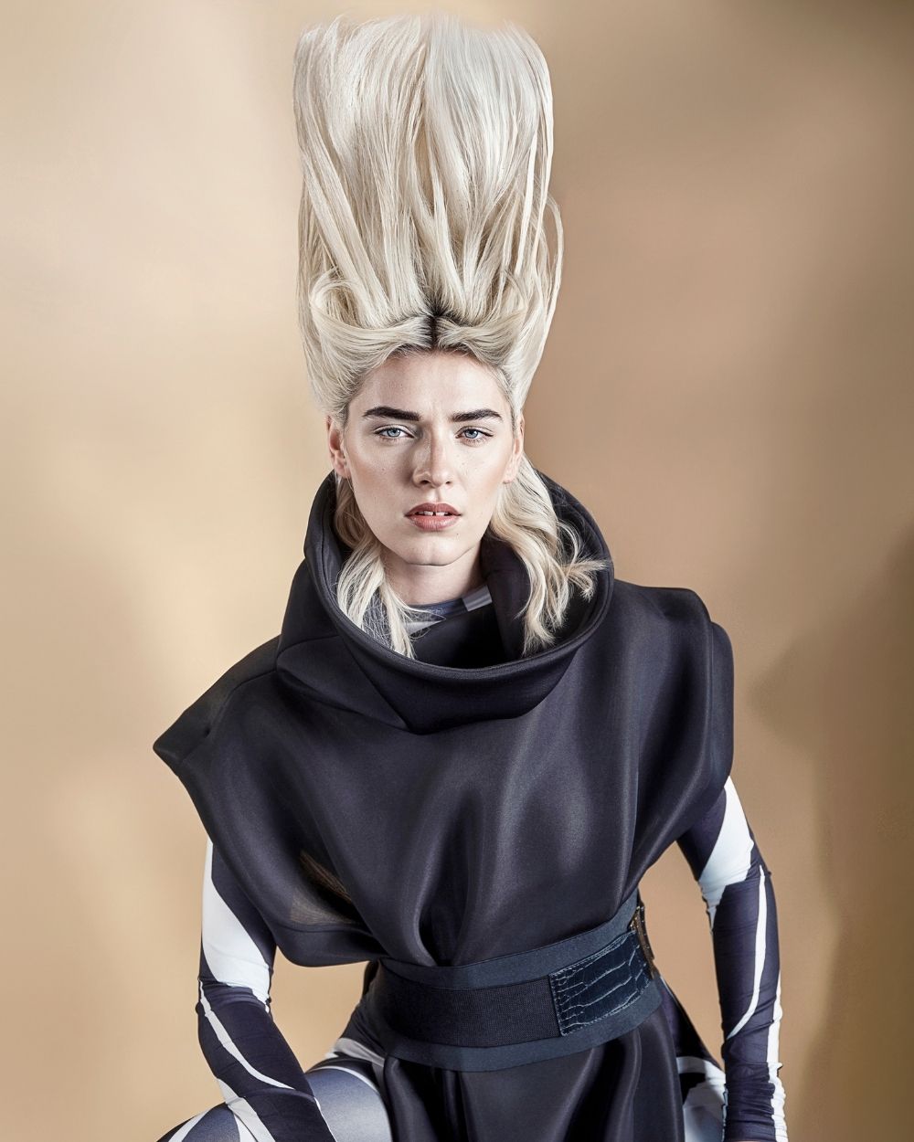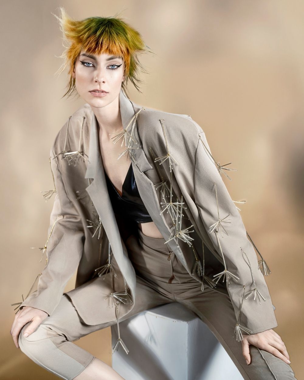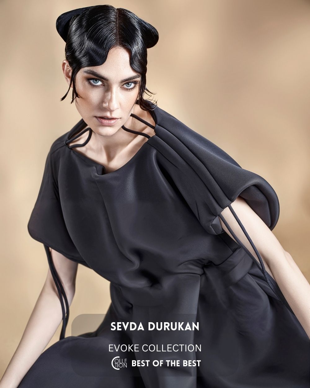 El cabello, audaz y dramático, actúa como su armadura, incorporando formas geométricas, texturas irregulares y técnicas de corte desconectadas y entrecortadas para lograr un acabado natural. Profundizando en el poder puro de la transformación, los colores tenues se fusionan con sus siluetas definidas para crear un acabado impactante. «Evoke» cautiva con cada look que te atrae aún más: esta colección explora la relación entre la feminidad y la vanguardia, estableciendo un enfoque contemporáneo sobre la confianza y la percepción.